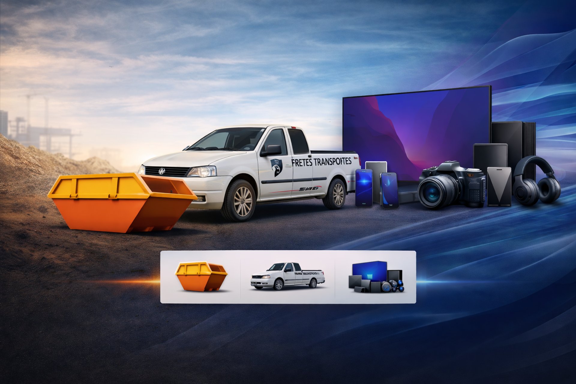 Frete, eletrônicos e locação de caçamba com confiança e agilidade.